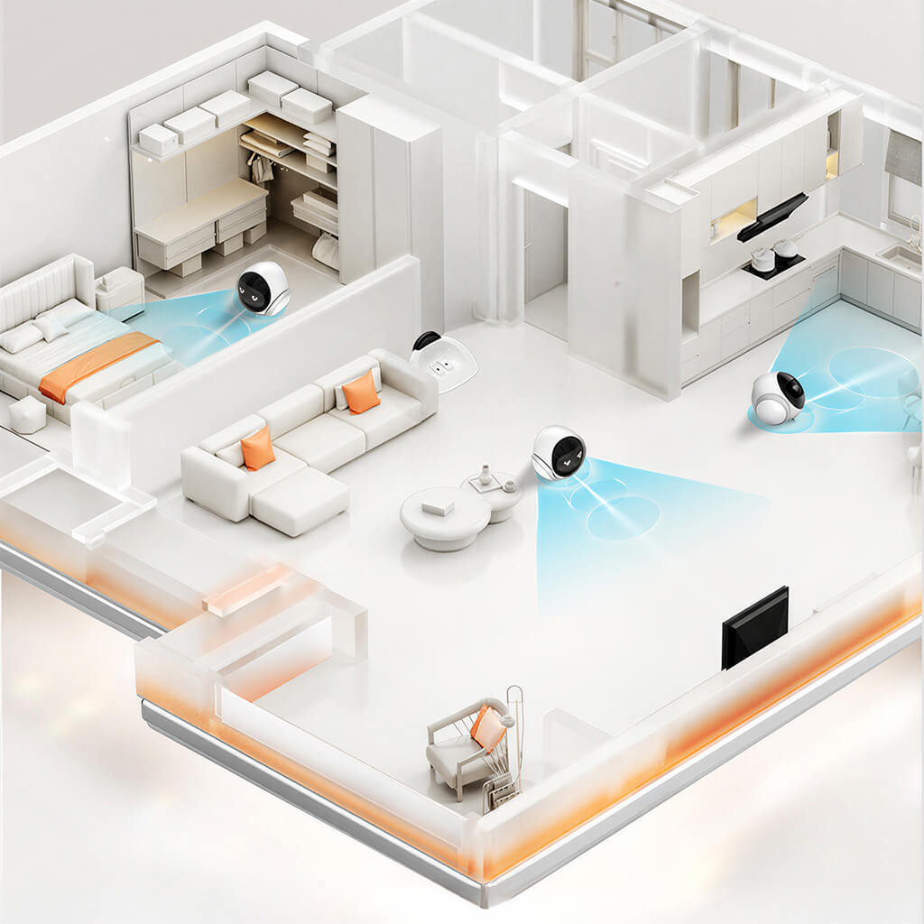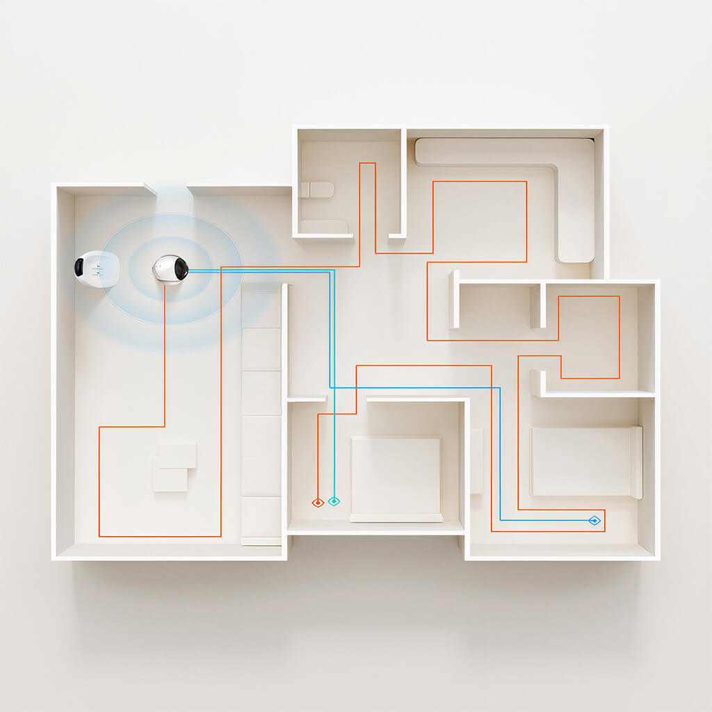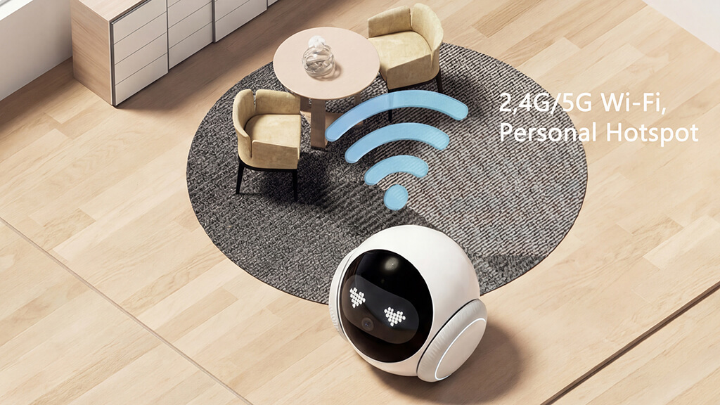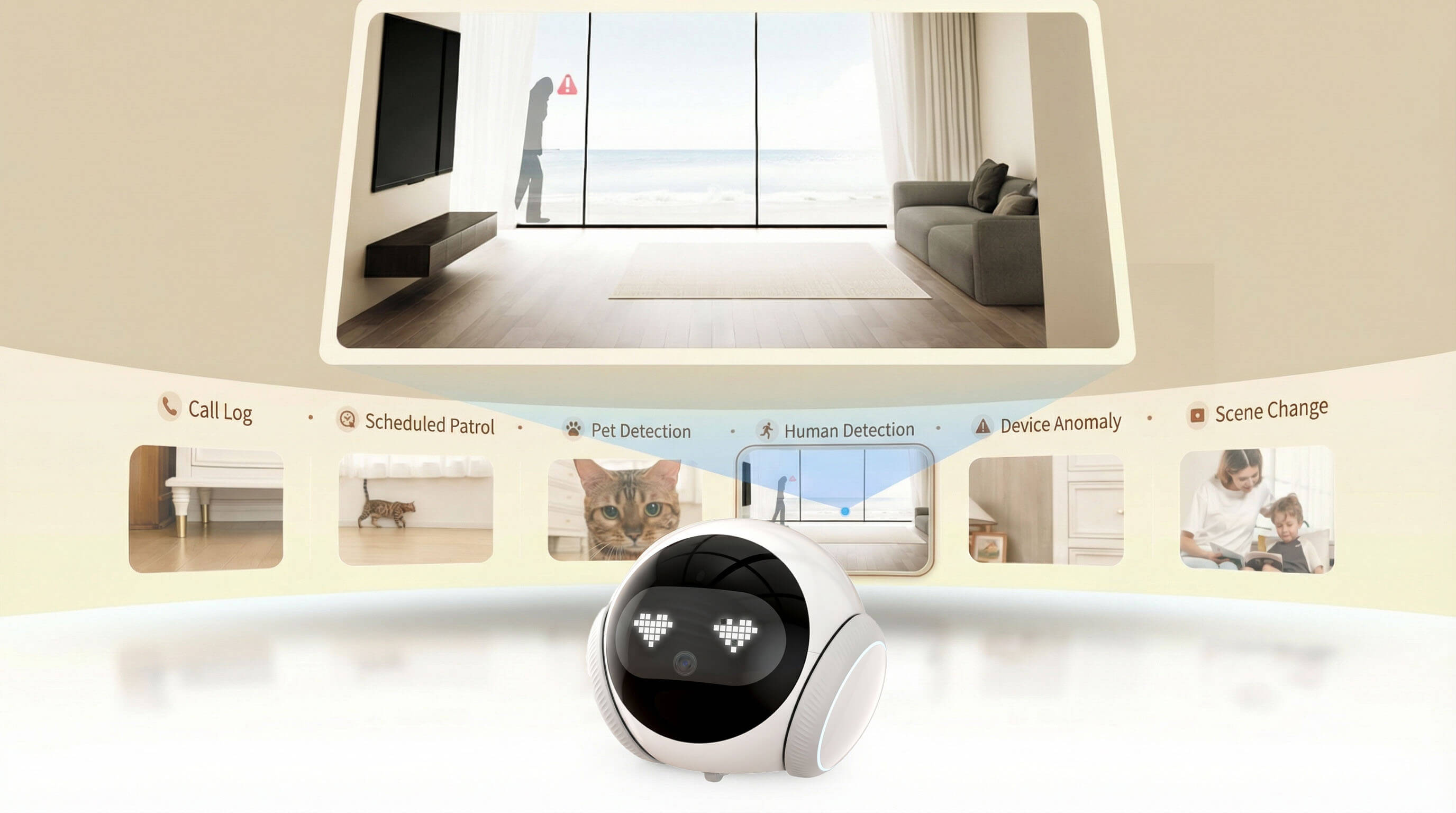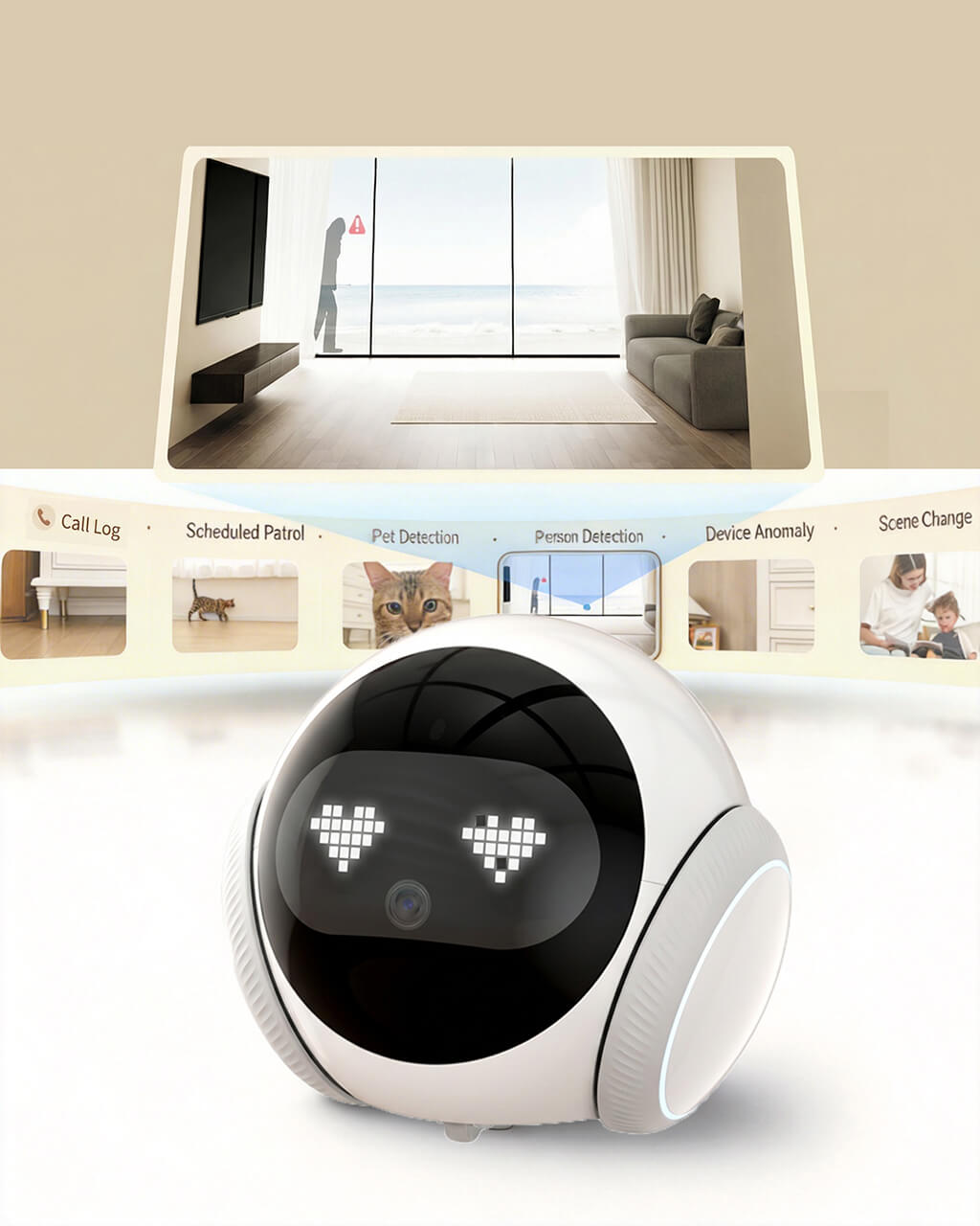 Till skillnad från traditionella fasta kameror kan Budbot röra sig fritt i hela hemmet.